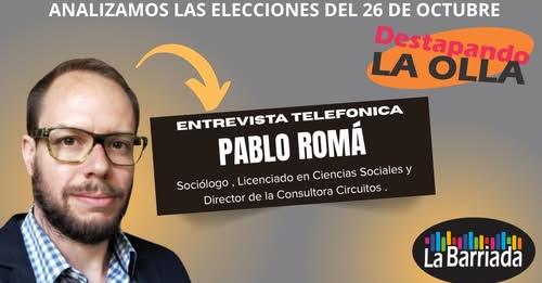 En charla telefonica conversamos con Pablo Romá Sociólogo , Licenciado en Ciencias Sociales y Director de la Consultora Circuitos, sobre las elecciones del pasado domingo 26 de octubre. Te compartimos la entrevista realizada en FM La Barriada.